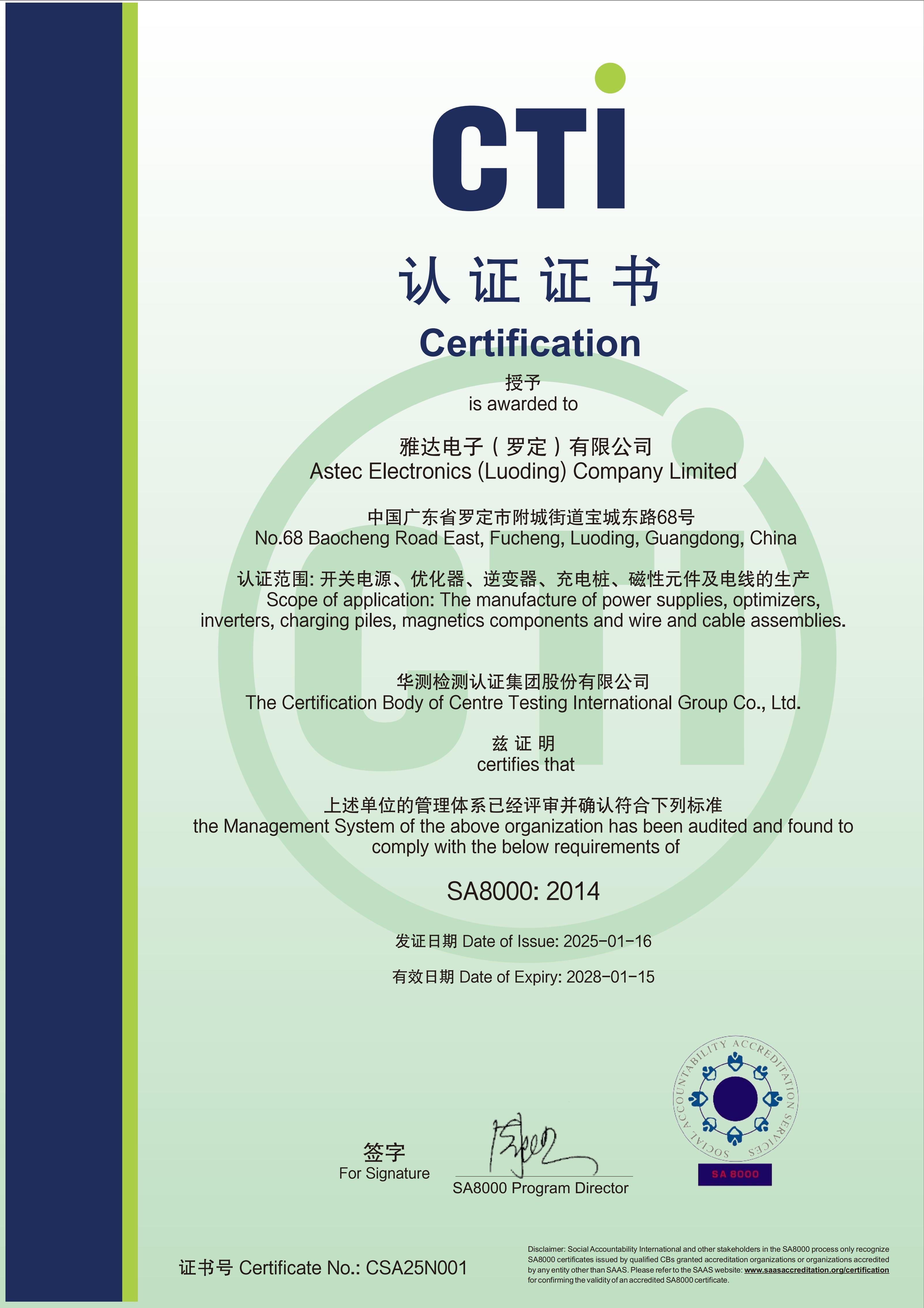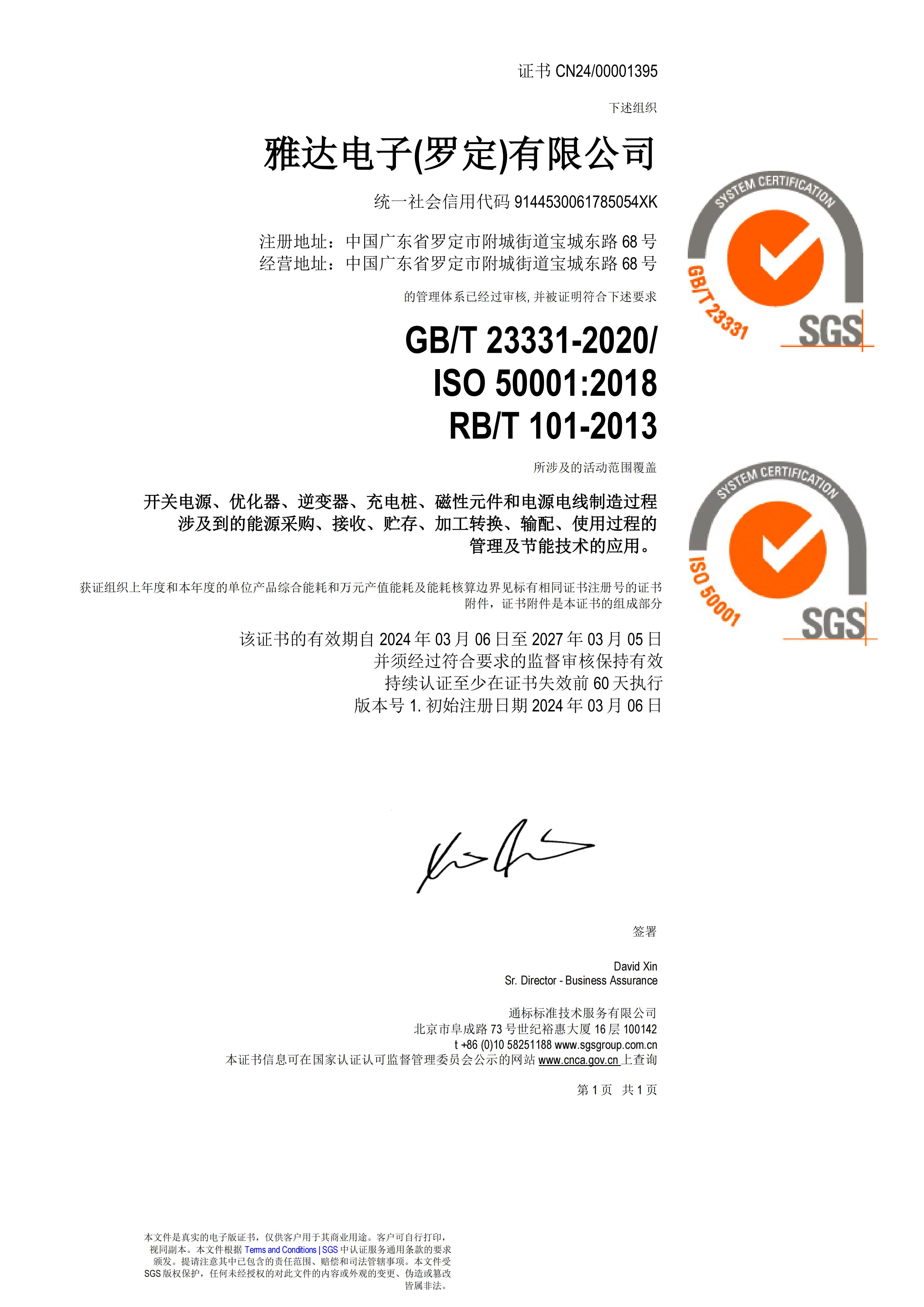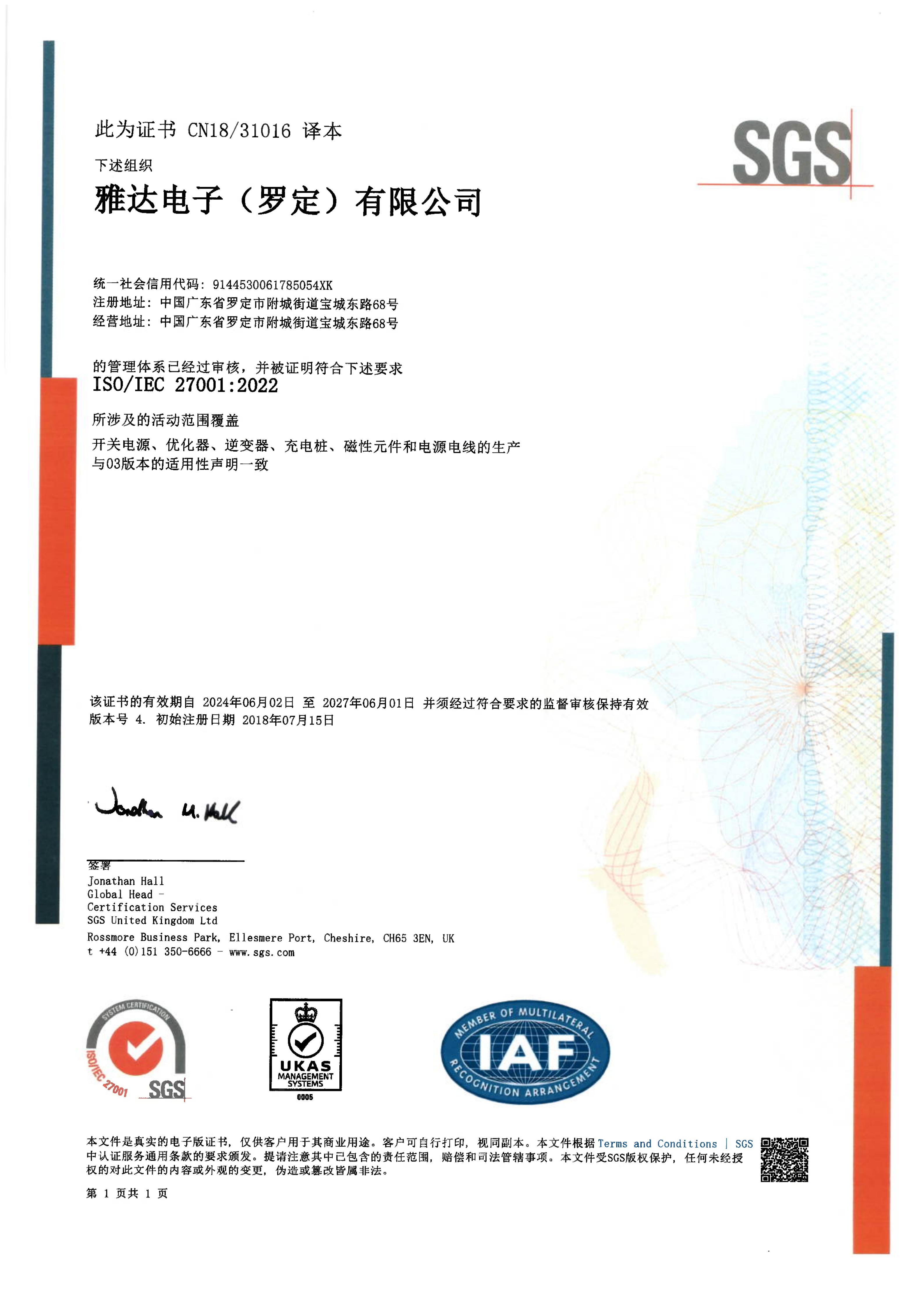 企业通过七个管理体系认证,产品获得全球范围内的安规认证